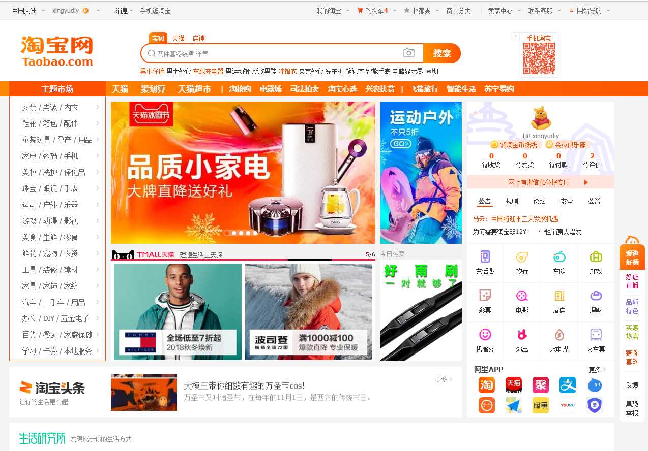 淘宝网是亚太地区较大的网络零售、商圈,由阿里巴巴集团在2003年5月创立。淘宝网 [1] 是中国深受欢迎的网购零售平台,拥有近5亿的注册用户数,每天有超过6000万的固定访客,同时每天的在线商品数已经超过了8亿件,平均每分钟售出4.8万件商品。 截止2011年年底,淘宝网单日交易额峰值达到43.8亿元,创造270.8万直接 且充分就业机会。随着淘宝网规模的扩大和用户数量的增加,淘宝也从单一的C2C网络集市变成了包括C2C、团购、分销、拍卖等多种电子商务模式在内的综合性零售商圈。目前已经成为世界范围的电子商务交易平台之一。 2016年3月15日,315晚会曝光,淘宝商家存在刷单等欺骗消费者现象。 2016年3月29日,阿里巴巴集团CEO张勇为淘宝的未来明确了战略:社区化、内容化和本地生活化是三大方向。 2018年3月,北京市消协官网显示,北京市消协2017年在淘宝购买了4种比较试验样品,其中有1种不达标,不达标率为25.0%。 2018年8月8日,阿里巴巴淘宝透露将进军MR(混合现实)购物领域,即将在2018年造物节上推出产品——淘宝买啊。 2018年天猫双11全球狂欢节全天成交额突破2000亿元(人民币,下同)大关,达到2135亿元。同时,今年天猫双11全天物流订单量达到10.42亿,再创新纪录,进入1天10亿包裹的时代。